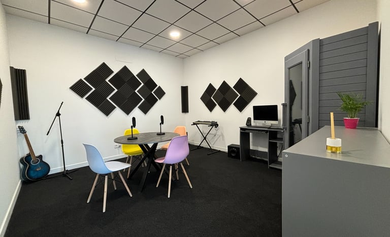 ¡Estamos en el aire! Graba tu podcast con la mejor calidad posible en nuestra sala de sonido, preparada para todas tus necesidades. Realiza bandas sonoras, graba locuciones o efectos sonoros para que tus producciones brillen más.
