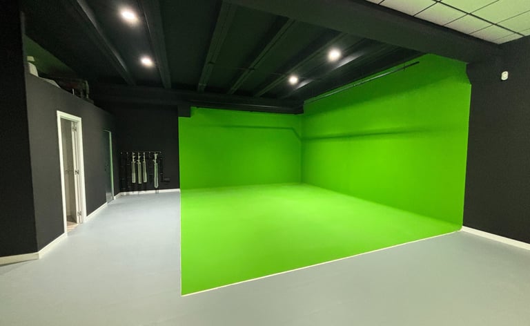 Ciclorama chroma key con 25m² de superficie y 4m de altura para elevar tus proyectos al siguiente nivel.